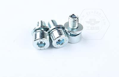8.8級鍍環(huán)保藍白鋅 內(nèi)六角不滾花圓柱頭帶平彈墊組合螺釘 內(nèi)六角三組合的產(chǎn)品圖片