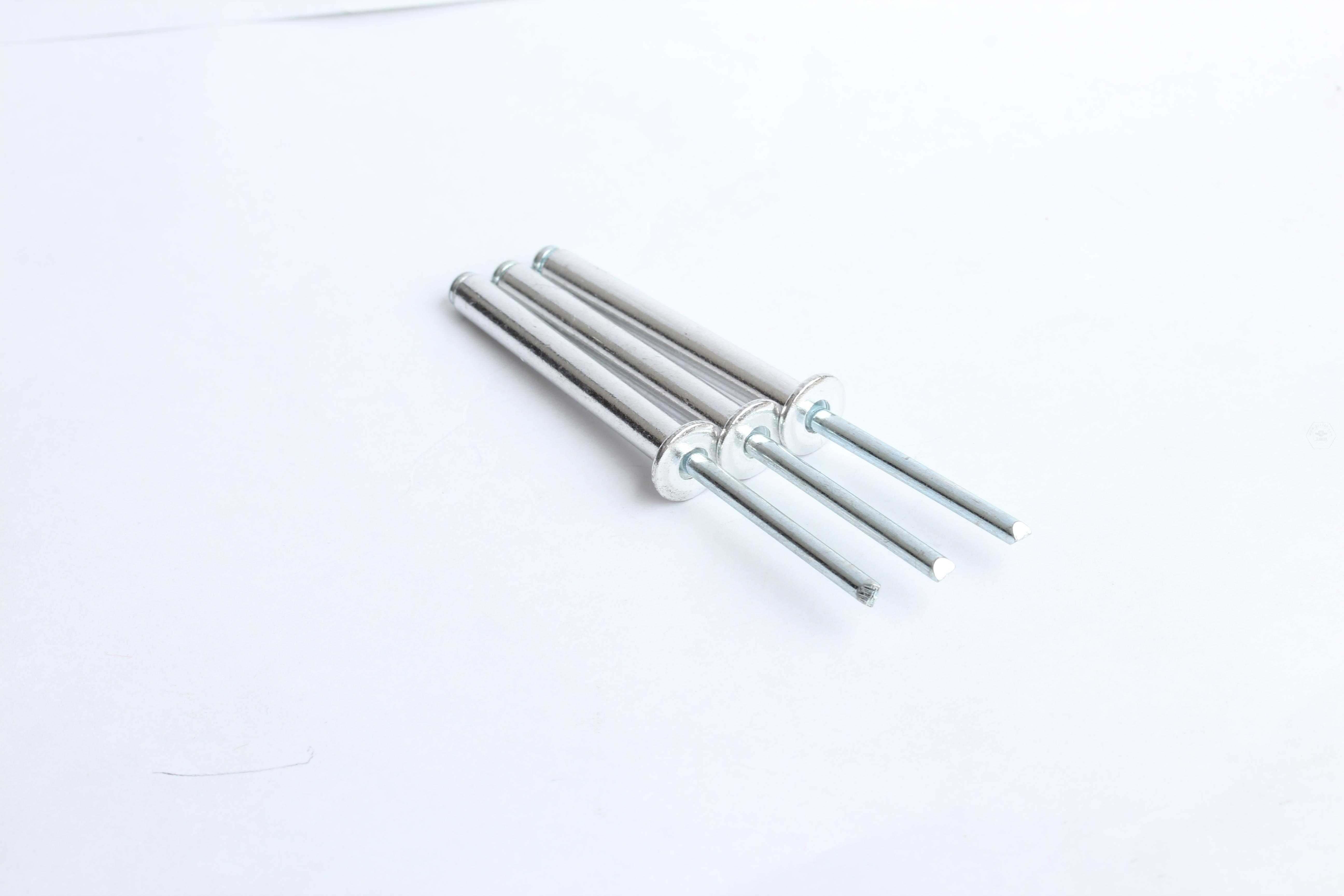 鉚接時(shí),鉚釘釘芯由專用鉚槍拉動,使鉚體膨脹,起到鉚接作用。這類鉚釘特別適用于不便采用普通鉚釘(須從兩面進(jìn)行鉚接)的鉚接場合。故廣泛用于建筑、汽車、船舶、飛機(jī)、電器、家具等產(chǎn)品上。