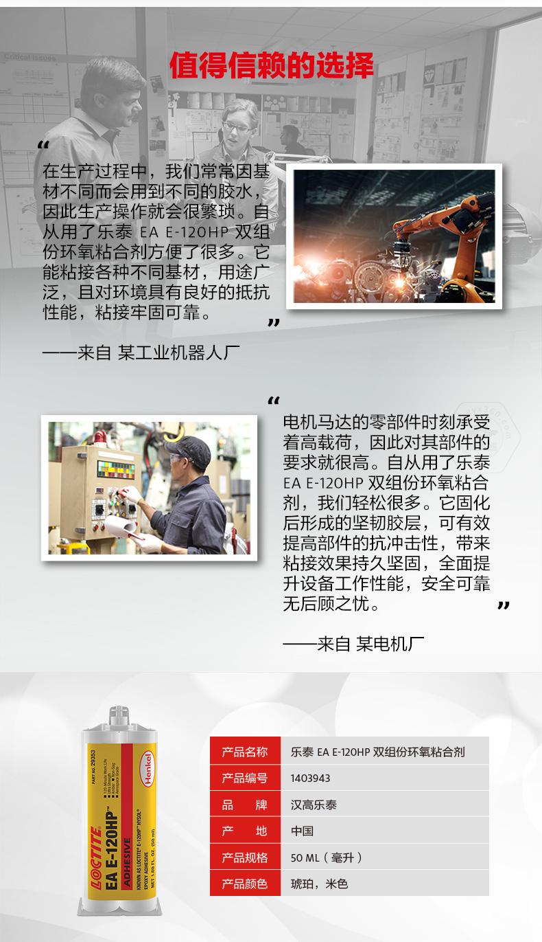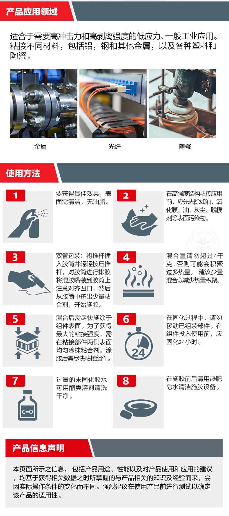 樂泰EA E-120HP雙組份環(huán)氧粘合劑是一款雙組份、通用型、具有高抗剝離性的工業(yè)級環(huán)氧樹脂膠粘劑。樂泰EA E-120HP雙組份環(huán)氧粘合劑具備耐候性、耐沖擊和耐溶劑性能,可用于鋁、鋼和其他金屬,以及各種塑料和陶瓷的粘接。樂泰EA E-120HP雙組份環(huán)氧粘合劑適合需要高沖擊力和高剝離強度的低應力、一般工業(yè)應用。